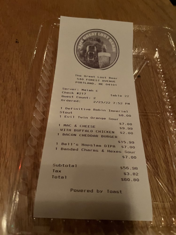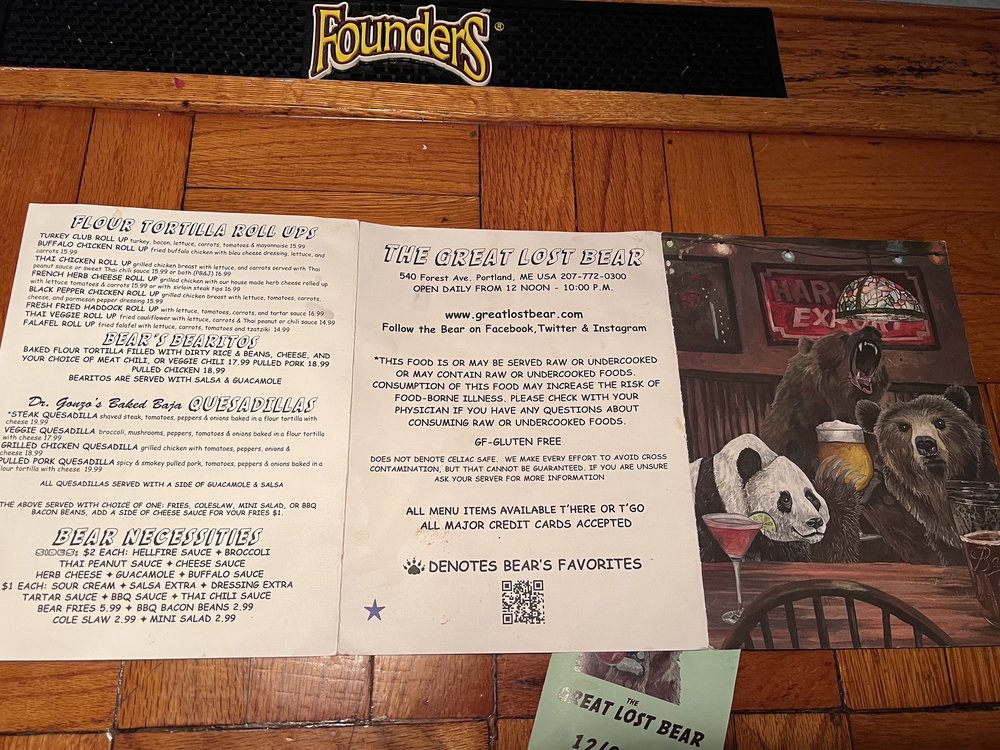 The Great Lost Bear is a popular spot in Portland, ME, known for its diverse menu of American classics, desserts, and beers. With offerings like Jalapeno Poppers, Mac & Cheese, and Teriyaki Grilled Mushrooms, the menu caters to a variety of tastes. Customers praise the ambiance, large portion sizes, and friendly service. The extensive beer list and noteworthy flights make it a go-to spot for beer enthusiasts. The Great Lost Bear also offers vegan options, catering to a wide range of dietary preferences. Whether you're looking for a casual hangout with friends or a place to enjoy a satisfying meal, The Great Lost Bear is a must-visit in Portland.